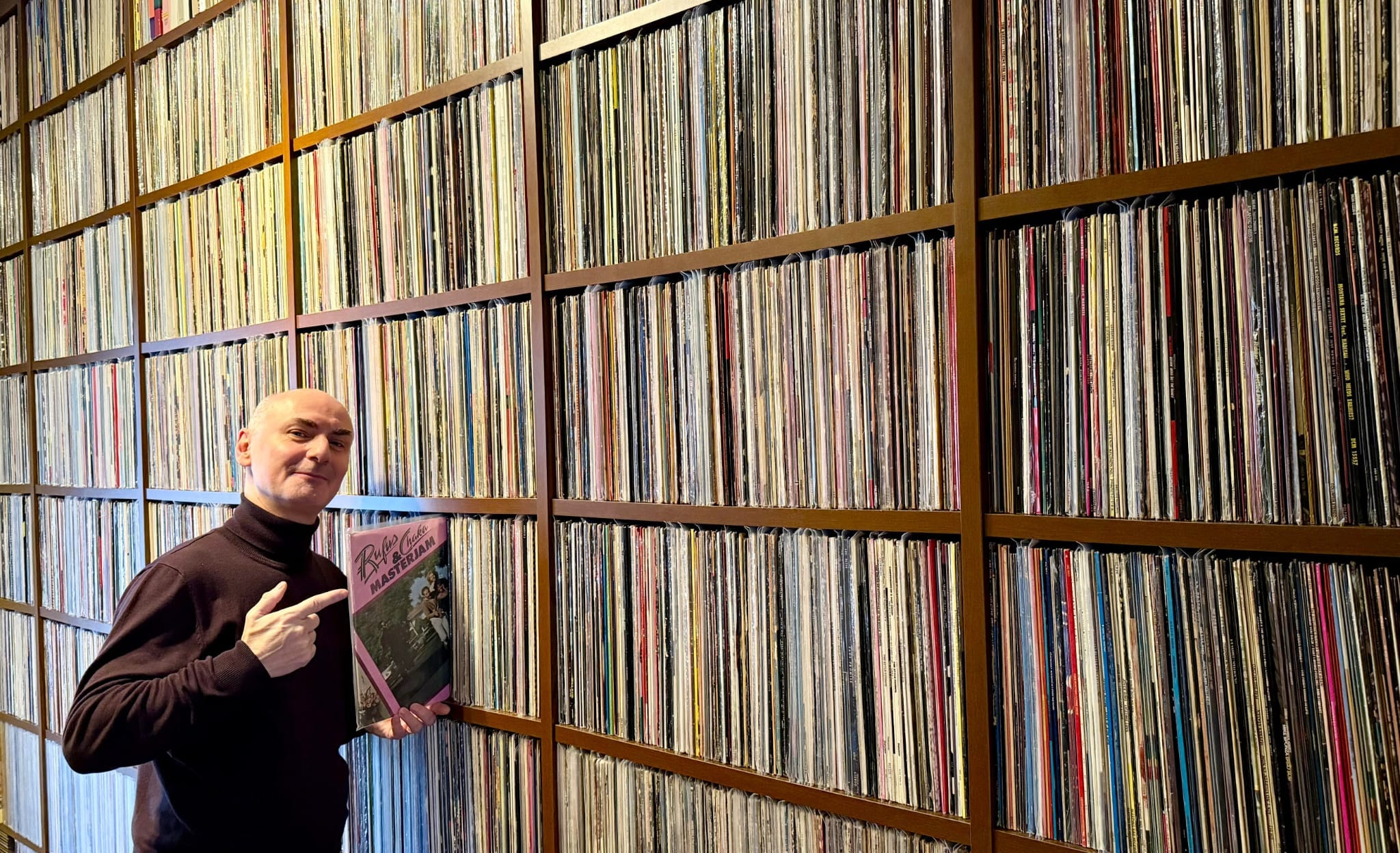 quasi 30.000 vinili, una conoscenza enciclopedica di produzioni, cataloghi, sessioni e rarità.